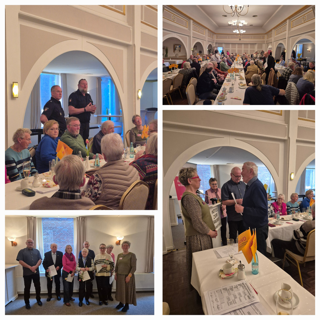 Am 29.03.2025 fand im Hotel zur Traube die Jahreshauptversammlung des SoVD Brundbüttel statt. 103 Mitglieder waren der Einladung gefolgt. Um 15 Uhr wurde die Versammlung vom 1. Vorsitzenden Gido Gummerlich-Petersen eröffnet. Bei Kaffee und Kuchen wurden folgende Themen besprochen: Helga Schepler informierte über bevorstehende Reisen, Frau Maertin Noehring (Stellvertretende Kreisvorsitzende) informierte über die Arbeit im Kreisverband. Grußworte der Stadt brachte der Bürgervorsteher Michael Kunkowski. Margit Schönfelder verlas das Protokoll der Versammlung vom Jahr 2024. Ehrung der Verstorbenen des Jahres 2024. Die Frauensprecherin Gabriele Knobloch berichtete von Veranstaltungen im letzten Jahr. Der Schatzmeister Thomas Biere gab Auskunft über Ein – und Ausgaben im Jahr 2024. Danach folgte der Bericht der Revisorin Elvira Hamann und bat um Entlastung des Vorstands.Dann folgte die Ehrung langjähriger Mitglieder.Zum Schluß hielten der POK Timm Rohwedde und sein Kollege einen Vortrag über Betrugsmaschen z.B Enkeltrick. Um 18 Uhr wurde die Verammlung vom 1. Vorsitzenden geschlossen.