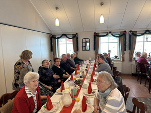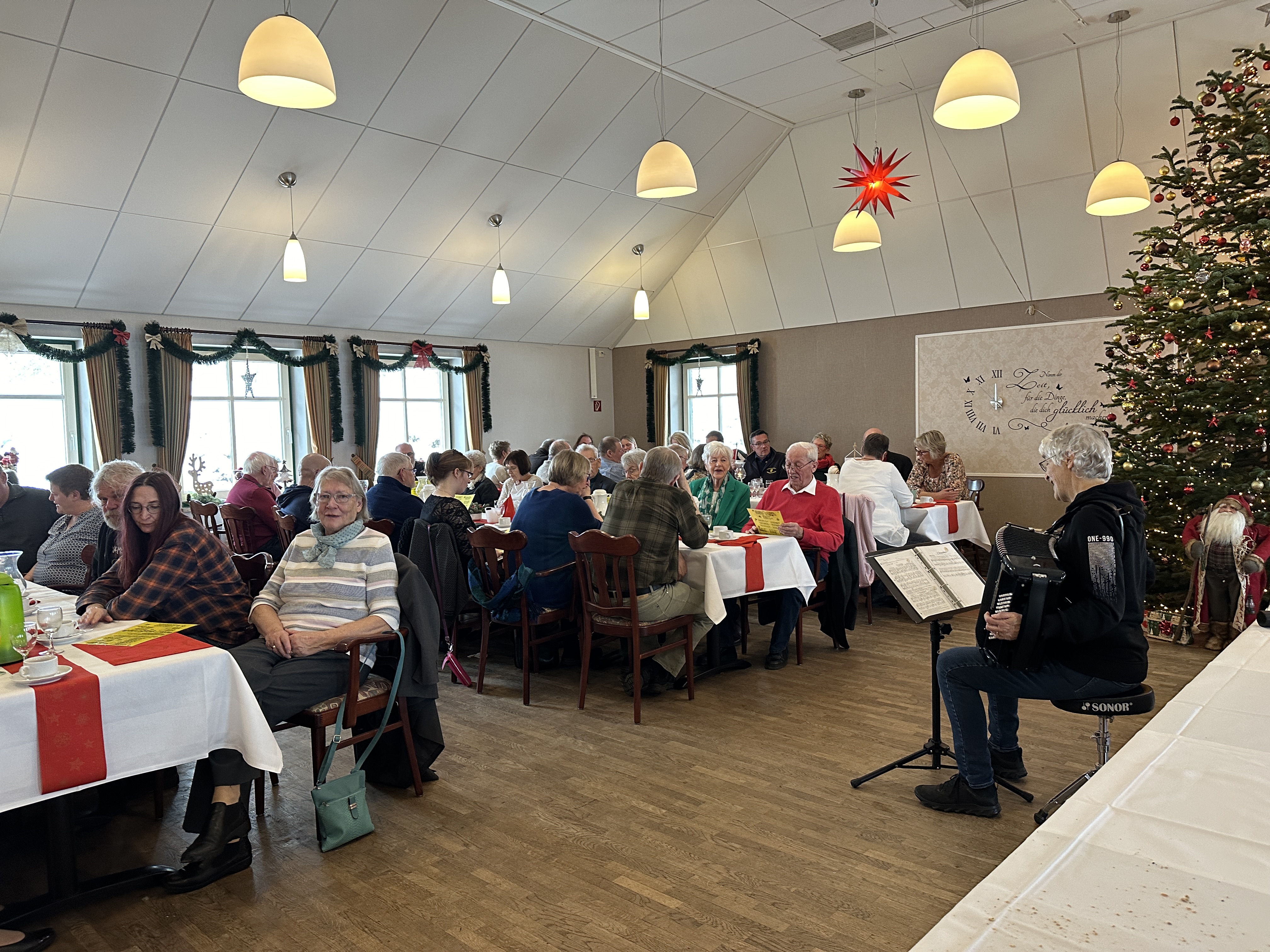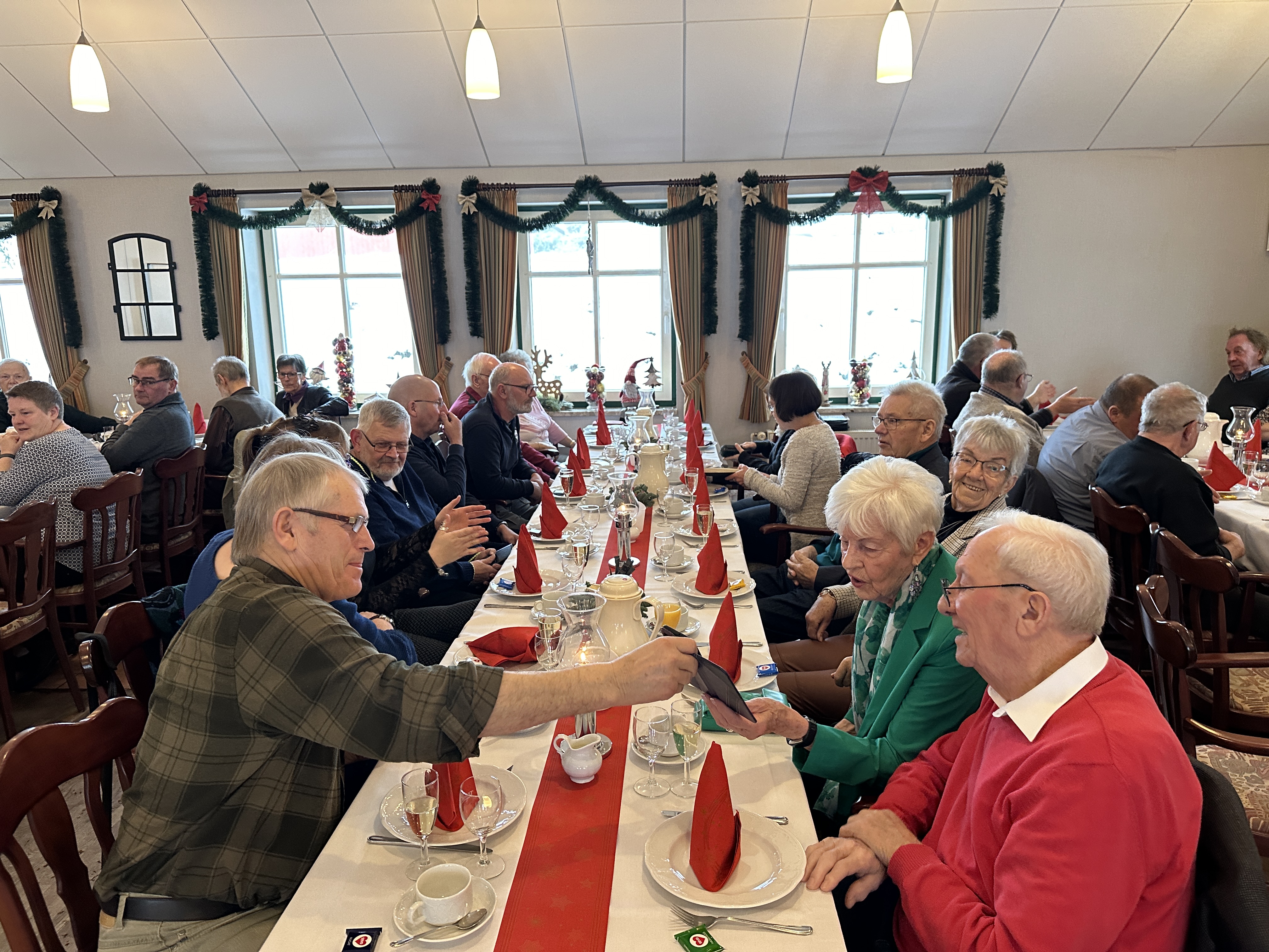 Am 1. Advent, dem 03. Dezember 2023, feierte der SoVD Ortsverband Frestedt traditionell seine Weihnachtsfeier im Kastanienkrug in Frestedt. Auf Anregung des 1. Vorsitzenden Erwin Knaack, wurde diesmal nicht zu Kaffee und Kuchen am Nachmittag eingeladen, sondern zu einem tollen Frühstücksbüfett. Den Mitgliedern wurde so die Gelegenheit gegeben, die Nachmittagsstunden wie gewohnt im Kreise der Familie vorweihnachtlich zu genießen, was auf große Begeisterung stieß. 45 Mitglieder erfreuten sich nicht nur an gutem Essen und anregenden Gesprächen, so auch an stimmungsvollen Weihnachtsliedern mit Hella Hammerich. Hierbei füllte sich das aufgestellte Sparschwein und die Mitglieder spendeten 317,50 € für Hellas Sammlung zur Unterstützung von Mukoviszidose Patienten.