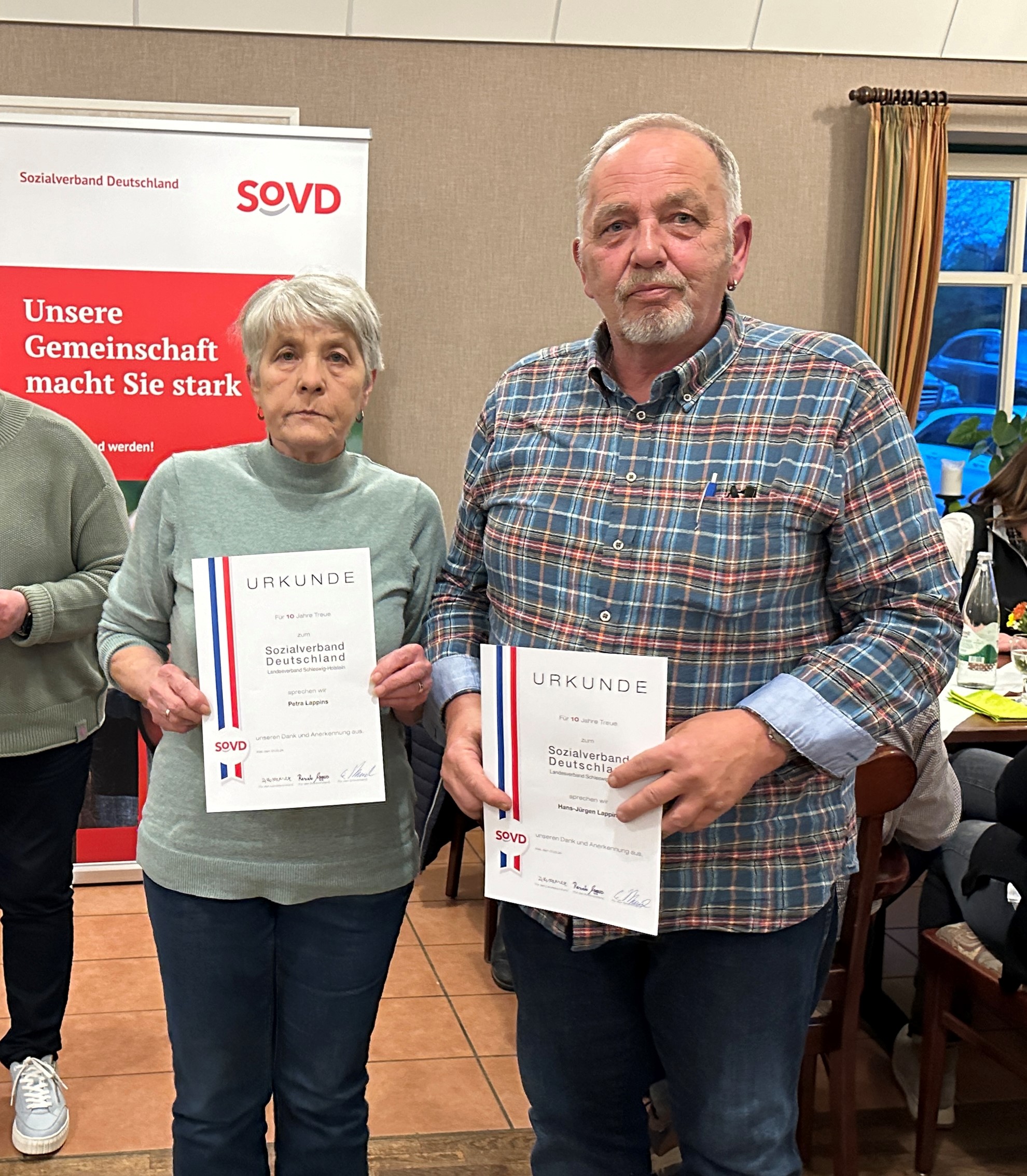 Am 5. April 2024 fand im Kastanienkrug die Jahreshauptversammlung des Sozialverbandes Ortsverband Frestedt statt. Dazu war als Gast Kreisvorsitzende Renate Eggers geladen, die später auch die Wahlen leitete. Mit Spannung erwartet wurde die Wahl des neuen Vorsitzenden. Nach einer zweijährigen Amtszeit als erster Vorsitzender übergab Erwin Knaack das Zepter an Kay Märtin. Kay, der bereits früher aktiv im Ortsverband als 2. Vorsitzender tätig war, versprach, die Traditionen zu bewahren und neue Impulse für die Zukunft zu setzen. Gleichzeitig bat er die Vorstandsmitglieder um Hilfe und Unterstützung bei seinen neuen Aufgaben, die ihm selbstverständlich zugesichert wurde. Seine Wahl markiert einen bedeutenden Schritt für den Ortsverband und signalisiert eine Zeit des Wandels und der Kontinuität gleichermaßen. Im Amt bestätigt wurden: Volker Ehlers 2. Vorsitzender, Lutz Doose Schatzmeister, Sabine Thedens stellvertretende Schatzmeisterin, Jutta Märtin-Nöhring Frauensprecherin und die Beisitzer*in Volker Boe und Kerstin Gehrts, sowie die Revisoren Telse Boe, Sönke Kühl und neu dabei Sönke Karstens. Mechthild Doose übernahm die Aufgaben als Schriftführerin, nachdem Ihre Vorgängerin Angela Klasen leider verstorben ist. Besondere Anerkennung für Ihre Funktionstätigkeit im Verband erhielten Jutta Märtin Nöhring (10J) sowie Telse Boe und Kerstin Gehrts (5J). Ebenso geehrt für ihre langjährige Mitgliedschaft im SoVD wurden: Gisela Sawitzki (35J), Anke Ehlers (30J) Petra und Hans-Jürgen Lappins (10J) und Bianka und Thies Staack (10J). Die Jahreshauptversammlung war nicht nur ein Moment der Reflexion und Anerkennung, sondern auch ein Ausblick auf eine vielversprechende Zukunft für den Ortsverband Frestedt unter der Führung von Kay Märtin. Es bleibt abzuwarten, welche neuen Höhen der Verband unter seiner Leitung erreichen wird, aber eins ist sicher: Die Gemeinschaft steht bereit, die kommenden Herausforderungen mit vereinten Kräften anzugehen und weiter zu wachsen.