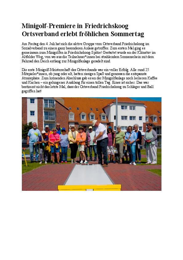 Die Mitglieder des Ortsverbandes Friedrichskoog im Sozialverbands erlebten einen sportlichen Sommer voller Spaß und Teamgeist. Ab Juli 2023 wurde fleißig Wikingerschach im Vorgarten der Klönstuv gespielt. Das beliebte Outdoor-Spiel, das auch als Kubb bekannt ist, erfreut sich immer größerer Beliebtheit und lockt Menschen jeden Alters an.