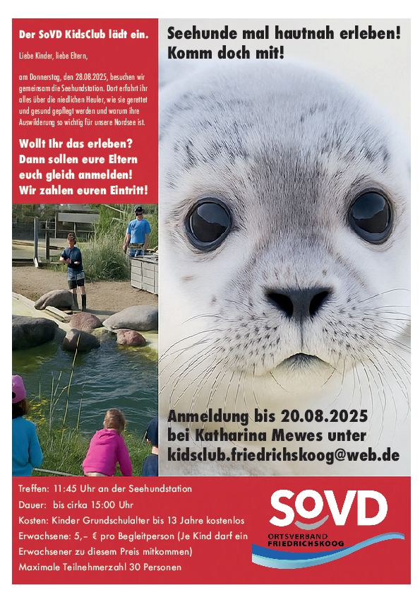 Der Sozialverband Deutschland (SoVD) Friedrichskoog hat am 13. September 2025 mit einer großen Gruppe von 46 Teilnehmenden den Familientag im Erlebniswald Trappenkamp besucht. Mit einem eigens gecharterten Bus, dessen Kosten vom Ortsverband Friedrichskoog übernommen wurden, machten sich Kinder, Eltern und Begleitpersonen gemeinsam auf den Weg in den beliebten Erlebnispark. Vor Ort erwartete die Gäste ein abwechslungsreiches Programm: Ob Klettertürme und Riesenrutschen auf dem großen Abenteuerspielplatz, der Barfußpfad, die Naturerlebnisstationen oder das eindrucksvolle Wildgehege mit Rot- und Damwild – für jedes Alter war etwas dabei. Besonders die Greifvogel-Flugschau und die spannenden Mitmachaktionen zum Thema Wald und Natur sorgten bei den Kindern für Begeisterung. Danach gab’s für alle Gäste leckere Verpflegung und Spiel „Unser Ziel ist es, Familien Gemeinschaft und schöne gemeinsame Stunden zu ermöglichen – unabhängig vom Geldbeutel“, betonte der Vorsitzende des SoVD-Ortsverbands. Dank der Unterstützung des Sozialverbands sowie der Finanzierung des Busses durch den Ortsverband Friedrichskoog sei dieser Ausflug für alle erschwinglich gewesen. Am Ende des Tages kehrten die Teilnehmenden mit vielen Eindrücken und einem Lächeln im Gesicht zurück. Der SoVD Friedrichskoog sieht den gelungenen Familientag als wichtigen Beitrag zur Stärkung des Miteinanders in der Region – und denkt schon über eine Wiederholung im kommenden Jahr nach.