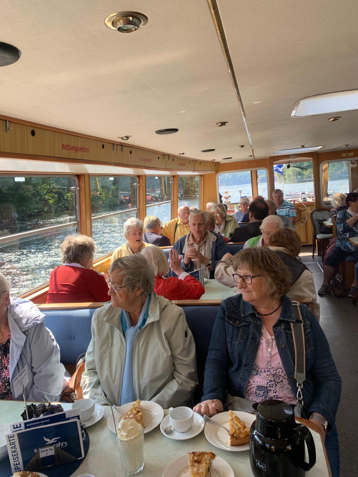 Wir starteten unsere Tagesfahrt im strömenden Regen. In Malente angekommen hat uns die lachende Sonne empfangen. Nach dem Mittagessen ,es gab Schnitzel mit Pommes,hatten wir eine Stunde Freizeit und haben diese genutzt um am See spazieren zu gehen. Danach traten wir eine zweistündige 5 Seen Schifffahrt an und genossen sie bei einem Stück Apfeltorte mit Sahne und Kaffee satt an. Ein wunderschöner Tag ging zu Ende.
