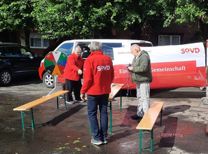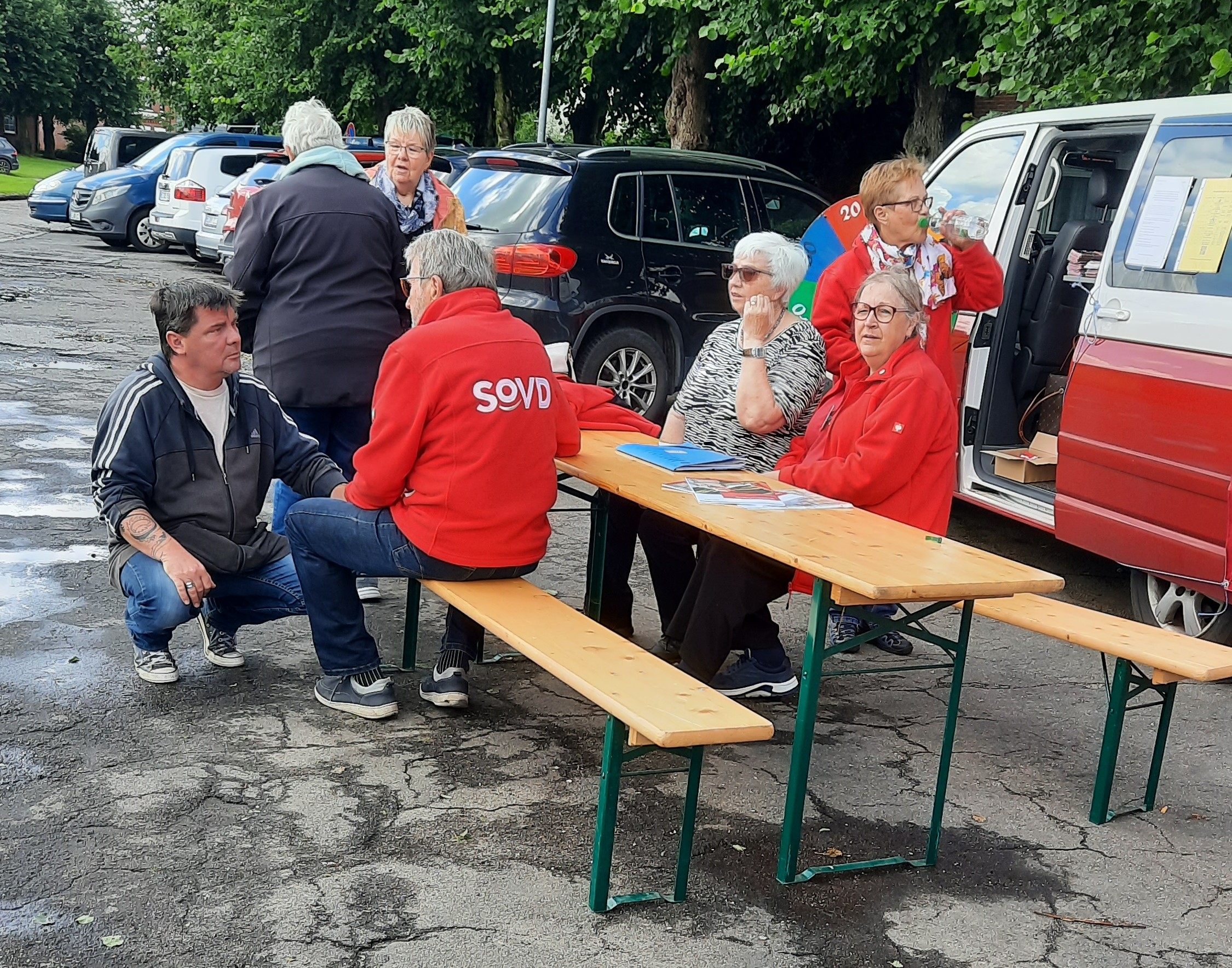 Am Sonntag, dem 7.7.24 war wieder der „Tag der Vereine“ in Lunden. Viele Vereine aus dem Bereich Lunden waren präsent. In diesem Jahr war auch der SoVD OV Lunden dabei. Für unseren kleinen SoVD- Bully bekamen wir einen schönen Stellplatz. Die Mitglieder des Vorstandes standen für Fragen bereit und das Angebot wurde sehr gut genutzt. Es kam zu vielen guten und inspirierenden Gesprächen. Vielen Interessierten war gar nicht bewusst, dass sie mit einer Mitgliedschaft im SoVD eine Solidargemeinschaft unterstützen. Mit einer Mitgliedschaft im SoVD unterstützen und helfen Sie Menschen, die sich sonst keine Hilfe bei Anliegen in gesetzlicher Renten-Krankenversicherung Pflegeversicherung und/oder Unfallversicherung leisten könnten. Auch bei Anliegen aus dem Behindertenrecht, der Grundsicherung und Sozialhilfe, dem Arbeitslosen- und Kurzarbeitergeld steht der SoVD den Menschen mit Beratung, Widerspruch und sogar bis zum Sozialgericht zur Seite. Um das zu leisten, braucht der SoVD-Menschen, die durch ihre Mitgliedschaft sich selbst und die Menschen in unserem Ort, unserem Kreis und unserem Land unterstützen. Betrachten Sie den Beitrag als steuerlich absetzbare Spende. Unsere weiteren Aktivitäten finden Sie unter sovd-lunden.online.