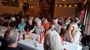 In diesem Jahr wurde auf der Weihnachtsfeier des SoVD OV Lunden das Ehrenamt mit in den Mittelpunkt gestellt. Die Vorsitzende des OV Lunden, Irmgard Fleig, konnte 70 Mitglieder zur Weihnachtsfeier begrüßen. In ihrer Rede hob sie das Ehrenamt besonders hervor. Was wären viele Vereine, Institutionen und Verbände ohne die vielen ehrenamtlich Tätigen. Ohne das Ehrenamt gäbe es z.B. die Ortsverbände beim SoVD, die Tafeln, Sportvereine, den Katastrophenschutz, viele Umweltorganisationen und auch die Feuerwehr nicht. Der Vorstand des SoVD OV Lunden besteht zurzeit aus 9 Ehrenamtlern. Davon sind etliche schon viele Jahre aktiv. Bei allen bedankte sich die Vorsitzende mit Urkunde und Pin vom Landesverband. Für 5 Jahre Arbeit im Ehrenamt erhielten diese Wiltrud Glöde und Brigitte Dunkelmann, für 10 Jahre Ilona Steffen, Gerd Tonert und Martina Martensen. Ronald Petersen erhielt außerdem für 25 Jahre Vorstandsarbeit den goldenen Ehrenschild des SoVD. Die anwesenden Mitglieder dankten den Geehrten mit reichlich Applaus. Nach den Ehrungen gab es ein reichhaltiges Buffet mit Rouladen, verschiedenen Gemüsen- und Kartoffelvariationen. Sandra Willersen verzauberte die Zuhörer mit ihrer klangvollen Stimme und weihnachtlichen Liedern. Sie sang nicht nur die üblichen Weihnachtslieder, die durch ihre Stimme einen ganz besonderen Klang bekamen. Auch Lieder, die nicht so oft zu hören sind, wie z.B. „Der kleine Trommler“, sorgten zusammen mit dem wunderbaren Weihnachtsbaum für eine festliche Stimmung. Ruth Dreeßen las eine plattdeutsche Geschichte und ein Gedicht vor, Kaffee und Torte beendeten die gelungene Weihnachtsfeier am 2. Advent. Bei der anschließenden Verlosung von 2 SoVD-Bären gewannen Elke Koch und Gisela Nielsen. Mit der Bekanntgabe der Aktivitäten im Jahr 2025 und vielen guten Wünschen für die Advents- und Weihnachtszeit sowie das neue Jahr 2025 verabschiedete Irmgard Fleig alle Mitglieder.