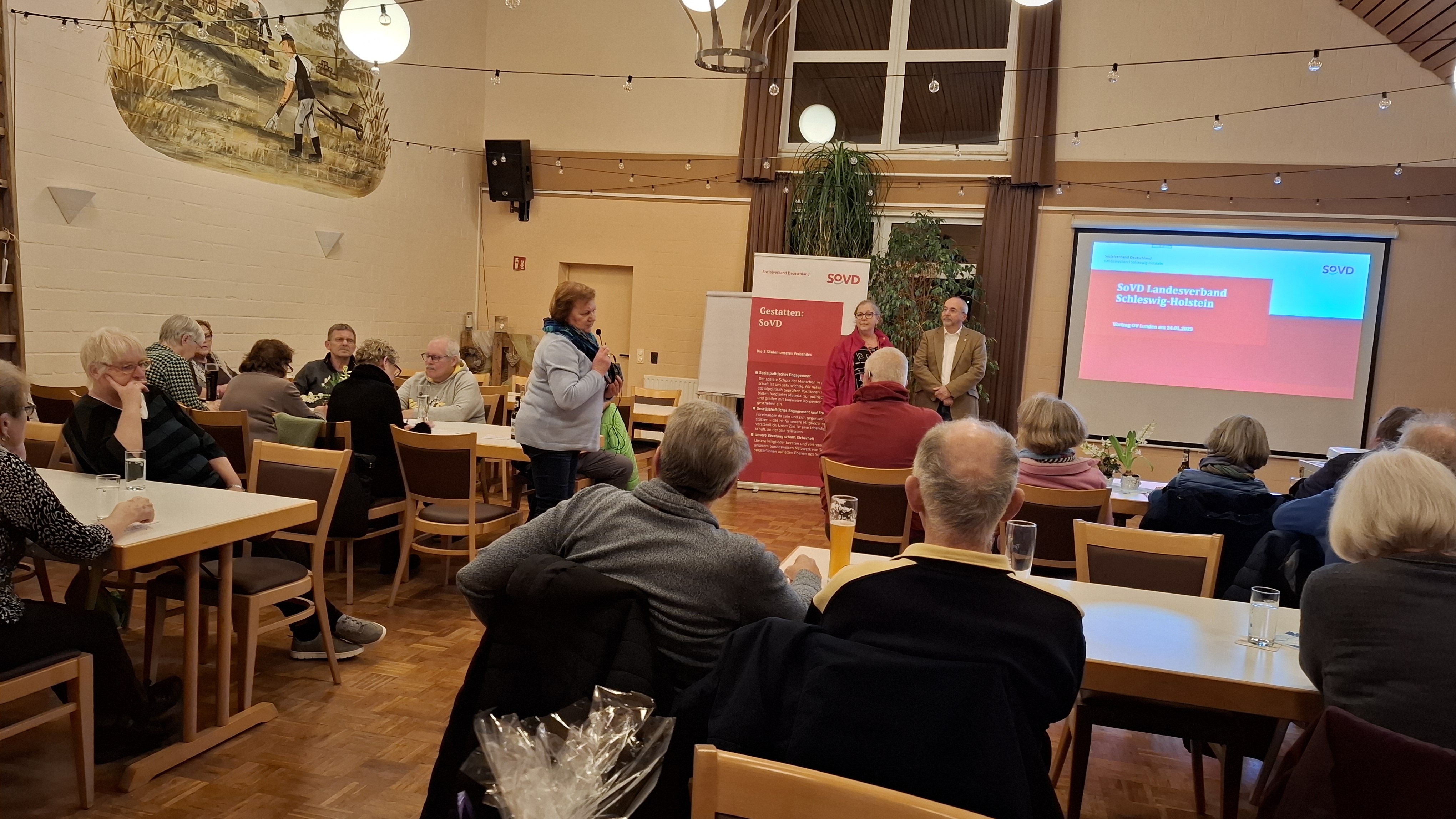 Auf der Mitgliederversammlung des SoVD-Ortsverband Lunden konnte der Altersdurchschnitt des Vorstandes durch zwei junge Beisitzerinnen gesenkt werden. Frauke Horn und Rabea Sötje-Looft wurden als Beisitzerinnen einstimmig gewählt. Nach Eröffnung, Grußworten von Bürgermeisterin Daniela Donarski und dem Bericht der Kreisvorsitzenden Renate Eggers zu den aktuellen Neuerungen und Veränderungen auf Kreis- und Landesebene folgte eine Schweigeminute zu Ehren der 27 Verstorbenen im Jahr 2024. Nach einem gemeinsamen Imbiss ließ die Vorsitzende Irmgard Fleig noch einmal das mit Vorträgen, Reisen und Veranstaltungen erfolgreiche Jahr 2024 Revue passieren. Der Bericht der Schatzmeisterin Wiltrud Gloede schloss sich an. Der Sprecher der Revisoren Jörn Walter bescheinigte dem Vorstand eine solide Arbeit und der Vorstand wurde einstimmig entlastet. Jörn Walter wurde im Anschluss für seine langjährige Tätigkeit als Revisor noch mit Urkunde und Pin geehrt. Alle Revisoren bekamen ein kleines Dankeschön, prüfen sie doch alle 3 Monate die Kasse. Die Schriftführerin Martina Martens wurde verabschiedet. Sie schied nach 10 Jahren aus persönlichen Gründen aus dem Vorstand aus. Kommissarisch wird Jürgen Fleig diese Position bis 2026 übernehmen. Informationen zu den weiteren Veranstaltungen in diesem Jahr und einem Ausblick auf das Jahr 2026 folgten. Mit einem herzlichen Dankeschön an den Vorstand schloss die Vorsitzende die Mitgliederversammlung.