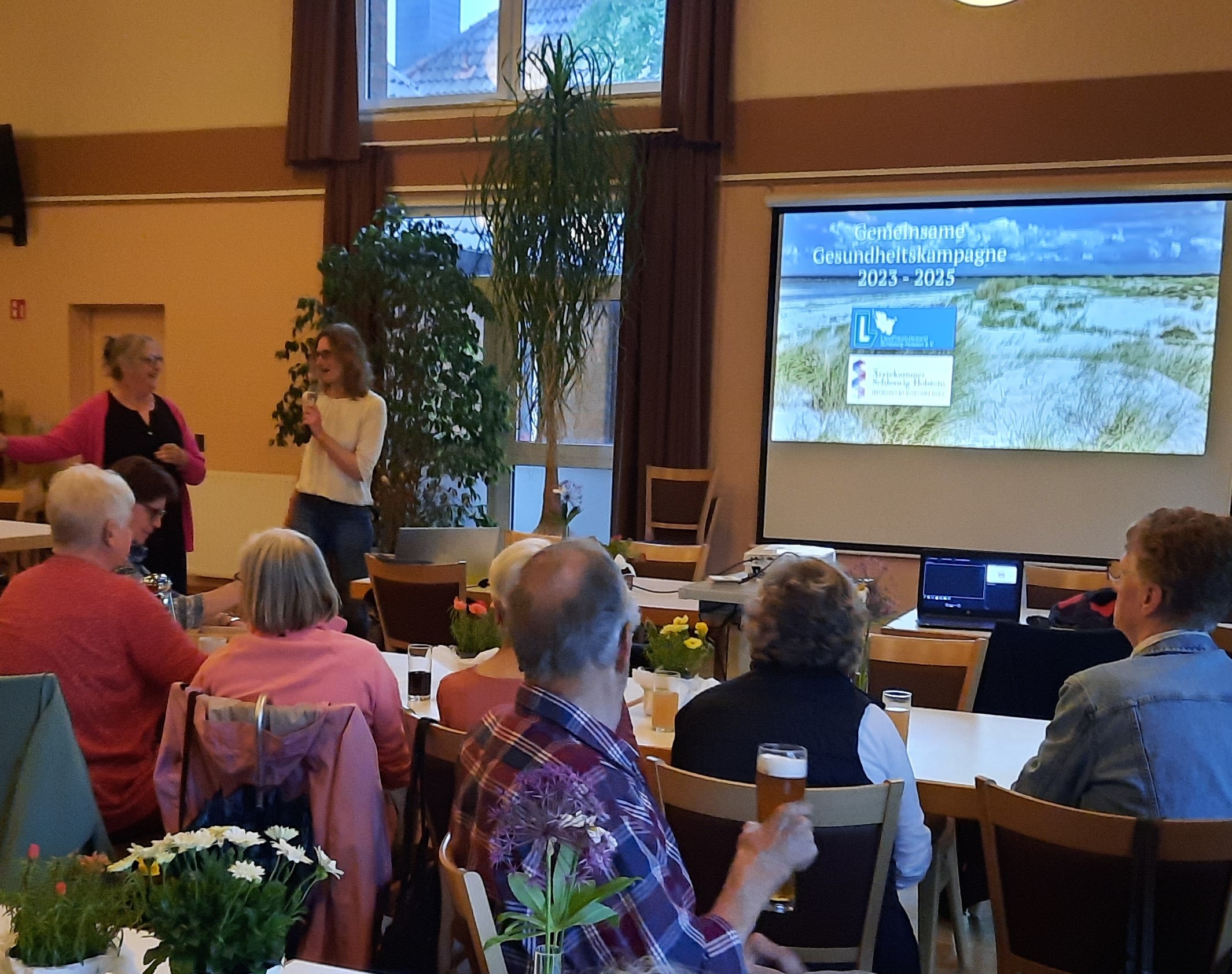 Unter diesem Motto stand die Infoveranstaltung des SoVD OV Lunden und der Ärztekammer Schleswig-Holstein am 22.Mai. Viele Männer dachten gleich, das ist nichts für mich. Die Frauen waren skeptisch, was das wohl sein sollte. Umso schöner war es, dass ca. 25 Frauen und 2 Männer den Weg ins Haus des Gastes in Krempel fanden. Frau Dr. Leykum, Neurologin, Geriaterin, Internistin und Oberärztin im Asklepios Klinikum Hamburg Wandsbek informierte zu diesem Thema. Die Kampagne der Ärztekammer Schleswig-Holstein möchte mehr darauf aufmerksam machen, dass es einen Unterschied macht, ob man eine Frau oder ein Mann ist und was das in der Medizin bedeutet. Frauen haben auf ihren X-Chromosom ca. 1500-2000 Gene, diese sind für Herz, Gehirn und Immunsystem sehr wichtig. Männer haben auf ihrem Y-Chromosom nur ca. 80-100 Gene und diese sind überwiegend auf die Sexualität ausgerichtet. Das Immunsystem bei Frauen ist sehr viel aktiver, daher haben Frauen auch häufiger z.B. Rheuma und Osteoporose. Auf Medikamente, Alkohol, Rauchen und Umwelteinflüsse reagieren Frauen anders und oft heftiger als Männer. Leider ist es statistische Tatsache, dass die Diagnose“ Herzinfarkt“ bei Frauen bei Einlieferung ins Krankenhaus oft bis zu 1 Stunde später gestellt wird als bei Männern. Anhand der Symptome wird eher an psychische Probleme, Magen-Darm-Erkrankung oder „Rücken“ gedacht. Anhand von Beispielen und Berichten aus ihrem klinischen Alltag konnte Dr. Leykum den Anwesenden viele Unterschiede zwischen Männern und Frauen aufzeigen. So kennen die meisten Frauen ihre Medikamente, die sie einnehmen. Wenn nicht den Namen, so kennen sie deren Wirkung und warum sie sie bekommen. In der Forschung und bei Tests von Medikamenten wird die Kenntnis, dass Medikamente bei Frauen anders wirken, immer öfter mit weiblichen Testpersonen getestet. Auch die Industrie hat mittlerweile erkannt, dass es einen Unterschied macht, ob für Tests ein weiblicher Dummy genutzt wird. Männer können dem Arzt alle Features ihres Autos nennen, aber ihre Medikamente kennen die wenigsten von ihnen. Dr. Leykum legte den Frauen ans Herz wie wichtig es sei, auf sich selbst zu achten und öfter eine Diagnose zu hinterfragen und eine Zweitmeinung einzuholen. Auch Veränderungen, gerade im Alter, sollten Frauen nicht auf die leichte Schulter zu nehmen. Es wäre sehr schön, wenn das Bild der gestressten, übersensiblen, depressiven Frau endlich aus den Köpfen von Medizinern und anderen Frauenverstehern entfernt werden könnte. Frauen sind halt anders!!