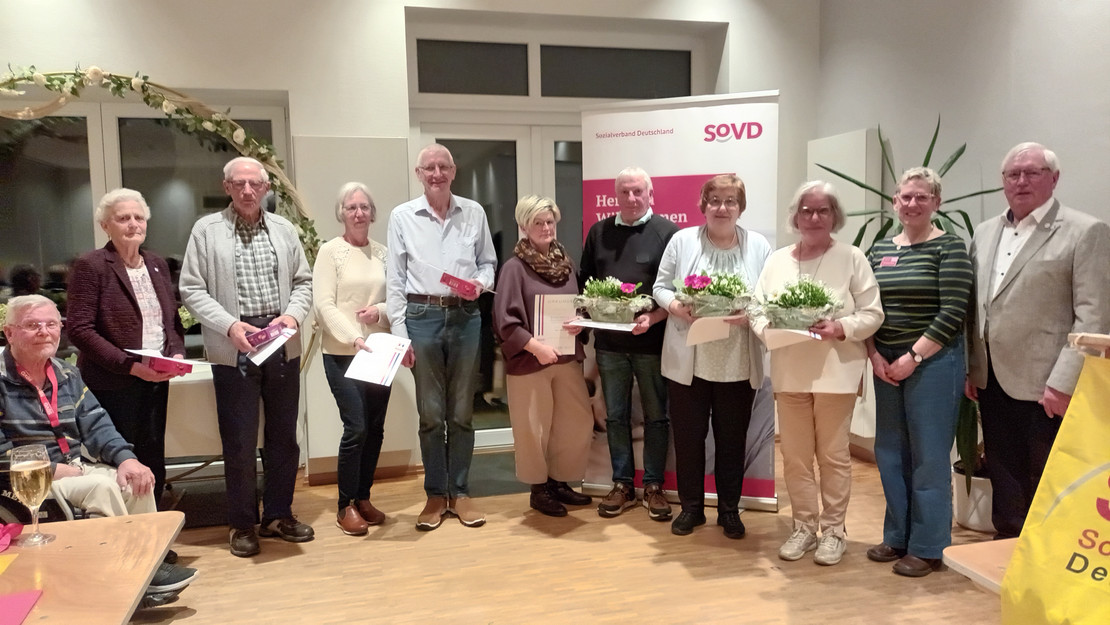 Zu der 79. Mitgliederversammlung seit 1947 konnte der 1.Vorsitzende Hans-Peter Wolters 58 Mitglieder im Gasthof „Zur Eiche“ begrüßen, herzlichst begrüßt wurde die Stellv. Vorsitzende des SoVD Kreisverbandes Jutta Märtin-Nöhring, unser Ehrenmitglied Emil Speck und Bürgermeister Harald Mahn. In den Grußworten berichtete Jutta Märtin-Nöhring ausführlich über das Arbeits- Beratungsfeld im Sozialberatungszentrum in Heide. Unser Bürgermeister Harald Mahn berichtete sehr umfangreich über aktuelle Themen in der Gemeinde, unter anderem betonte er die Leistung des SoVD Ortsverbandes im kulturellen Bereich für die Gemeinde. Nach den Grußworten der Gäste ließen sich alle Teilnehmer den reichlich angebotenen Kartoffelsalat und Würstchen schmecken. Nach dem gemeinsamen Imbiss ging es weiter in der Tagesordnung. Der 1.Vorsitzende berichtete ausführlich aus der Vorstandsarbeit und den vielen erfolgreichen Veranstaltungen aus dem Jahr 2025. Der Kassenbericht des Ortsverbandes wurde vom 1. Vorsitzenden vorgetragen, die Kassenwartin hatte sich kurzfristig krankgemeldet. Die Kassenlage ist ausgeglichen, durch die Sprecherin der Revisoren Elke Wolters wurde der Kassenprüfungsbericht vorgetragen und von den Mitgliedern wurde Entlastung des Vorstandes erteilt. Im weiteren Verlauf der Tagesordnung wurden Ehrungen von Mitgliedern und Vorstandsmitgliedern vorgenommen. Für 10 Jahre Mitgliedschaft wurden Ute Densing, Helga Häbel, Heidi Hartwig, Marion und Bastian Mahn, Frauke Möller, Heiko Neubauer, Walburga Stadel und Kerstin Weiß geehrt. Für 20 Jahre wurden Hans-Rudolf Paulsen und Silvia Tietjens geehrt. Für 25 Jahre wurden Reimer Kuhr und Margarethe Schlüter sowie für 40 Jahre Hildegard Schaper geehrt. Vom Vorstand wurde Rainer Steffan fünf Jahre Vorstand, Elke Wolters für 10 Jahre Revisorin und Hannelore Scheel für 15 Jahre Schriftführerin geehrt. Nicht alle geehrten konnten an der JHV teilnehmen. Die Jahresveranstaltungen für 2026 sind Spielenachmittage, Grünkohl Essen, Fahrradtour zum Radcafe, sechs tägige Reise nach Brandenburg und Berlin, Grillfest, Tagesfahrt zu den Probsteier Korntagen, Tagesfahrt nach Lauenburg und Schiffshebewerk Scharnebeck, Kohlrouladen essen, Fahrt zum Weihnachtsmarkt und die Weihnachtsfeier. Im Schlusswort bedankte sich der 1. Vorsitzende für die gute Zusammenarbeit bei seinem Vorstand, der Gemeinde, dem SoVD Beratungsteam in Heide und wünschte sich das wieder viele an den Reisen und Veranstaltungen teilnehmen können. Den Teilnehmern wünschte der 1. Vorsitzende einen guten Nachhauseweg.