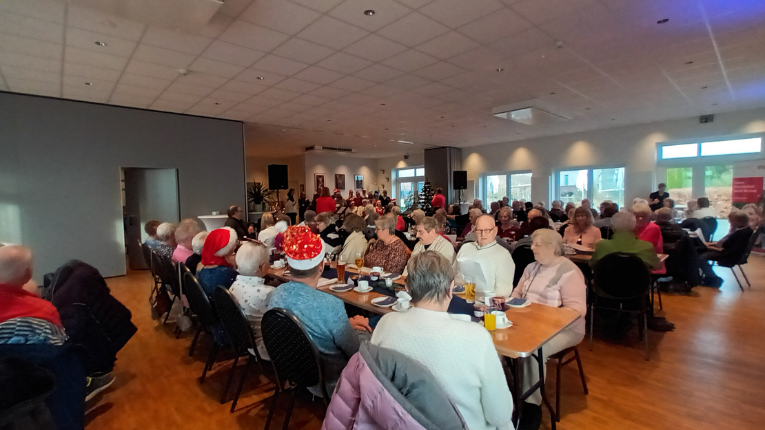 Der Ortsverband des SoVD Schafstedt hat auch in diesem Jahr zu der traditionell am dritten Advent stattfindenden Weihnachtsfeier im Gasthof „Zur Eiche“ Mitglieder mit Partner sowie Gäste herzlich eingeladen. Ganz herzlich konnte der Vorstand über 70 Teilnehmer und unser Ehrenmitglied Emil Speck begrüßt werden. Zur Gestaltung des Rahmenprogramms trug der Chor der Stiftung Mensch Fliekemas aus Meldorf mit vielen bekannten Weihnachtsliedern und Eigenen Liedern bei. Vor Beginn wurden Weihnachtsliedertexte verteilt, die zwischendurch zum Singen der Teilnehmer der Weihnachtsfeier mit musikalischen Begleitung des Chores beitrug. Vor der Kaffeetafel hat der 1. Vorsitzende Hans-Peter Wolters die Termine und Reisen für das kommende Jahr 2025 bekannt gegeben. Die Waffelbäckerinnen vom Weihnachtsmarkt und die Organisatoren der Spielenachmittage wurden mit einem Präsent für ihr Wirken belohnt. Mit Kaffee, Kuchen und belegten Broten wurde vom „Zur Eiche“ Team reichlich für das leibliche Wohl gesorgt. Der Chor, die Fahrer und Betreuer des Chores wurden vom SoVD mit Getränken bedacht. Hannelore Scheel hat mit ihren amüsanten Weihnachtsgeschichten zur Unterhaltung beigetragen. Nun war auch jede Menge Zeit einen Klönschnak mit seinem Nachbarn zu halten. Das Gemeinsame Singen mit instrumentaler Begleitung vom Chor Fliekemas und der vorgetragenen Geschichte zur Weihnachtszeit kam bei allen Mitgliedern und Gästen sehr gut an. Alle Teilnehmer durften die von Elke Wolters und Hannelore Scheel gekochten Marmeladengläser (100) mit nach Hause nehmen. Auch der Chor wurde mitbedacht. Der 1. Vorsitzende Hans-Peter Wolters verabschiedete den Chor und die zahlreichen Teilnehmer in die besinnliche Vorweihnachtszeit, und wünschte das alle im nächsten Jahr wieder so zahlreich an den angebotenen Veranstaltungen des SoVD OV Schafstedt teilnehmen können.